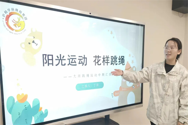 大班丁萍老師,通過跳繩案例的分享講述了教師不僅要學(xué)會放手更要學(xué)會為幼兒提供支持和引導(dǎo),教師的適宜支持和引導(dǎo)是兒童游戲和發(fā)展的重要保障,在幼兒游戲中,我們不難發(fā)現(xiàn)當(dāng)幼兒游戲出現(xiàn)困難的時候,幼兒選擇放棄的時候居多。當(dāng)幼兒放棄自己選擇的游戲時可能是因為幼兒的現(xiàn)有游戲水平不足以支持他的游戲狀態(tài)或者是高于他的游戲水平。所以作為一名幼兒教師,要觀察幼兒的游戲狀態(tài),觀察幼兒的注意與興趣,觀察幼兒的活動主題是什么以及他已有的游戲經(jīng)驗,從幼兒與游戲材料的互動中反思自己投放的游戲材料、創(chuàng)設(shè)的游戲情景是否適宜幼兒的現(xiàn)有發(fā)展水平,在幼兒運動中遇到困難,及時介入給予支持。