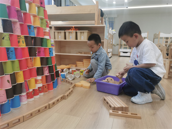 通過交流,教師們站在孩子的視角總結(jié)出建構(gòu)游戲中存在一些問題:建構(gòu)區(qū)的游戲材料較單一,不夠豐富多樣;教師的介入需要注意時(shí)機(jī)以及語(yǔ)言指導(dǎo)的目的性;孩子的建構(gòu)技能有待進(jìn)一步提高。面對(duì)這些問題,我們嘗試走近孩子的內(nèi)心世界,了解他們的身心發(fā)展特點(diǎn),直接感知、親身體驗(yàn)、實(shí)踐操作建構(gòu)材料。