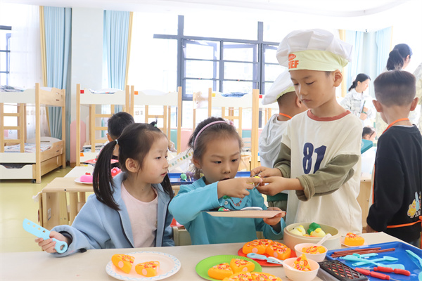 區(qū)域活動,是幼兒重要的自主活動形式。它是以快樂和滿足為目的,以操作、擺弄為途徑的自主性學習活動。區(qū)域活動充分體現(xiàn)了幼兒身心發(fā)展的特點,可滿足幼兒活動和游戲的需要,更好地促進幼兒自由、快樂、健康地成長,實現(xiàn)在“玩中學”、“學中玩”。本次區(qū)域觀摩評比活動主要是從環(huán)境創(chuàng)設、材料投放、教師指導、師幼互動、幼幼互動等方面進行評比。教師各自介紹本班的特色,從美工區(qū)的噴繪到表演區(qū)的彈唱,再到娃娃家的溫馨,處處體現(xiàn)了各班教師站在幼兒立場上創(chuàng)設游戲環(huán)境。