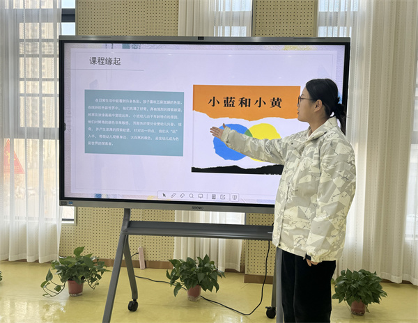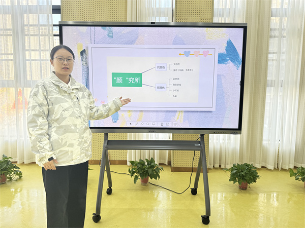 小三班教師劉燕分享的課程是《“顏”究所》課程起源是在日常生活中班級的幼兒很喜歡五彩斑斕的色彩。在繽紛的色彩世界中,充滿了好奇,具有強烈的探索欲望經(jīng)常在涂涂畫畫中變現(xiàn)出來。小班幼兒由于年齡特點的原因,他們對鮮艷的顏色非常敏感,而顏色的變化會使幼兒興奮、驚奇,并產生濃厚的探索欲望。針對這一特點,從“玩”入手,帶領幼兒觀察身邊大自然的顏色,啟發(fā)幼兒成為色彩世界的探索者。