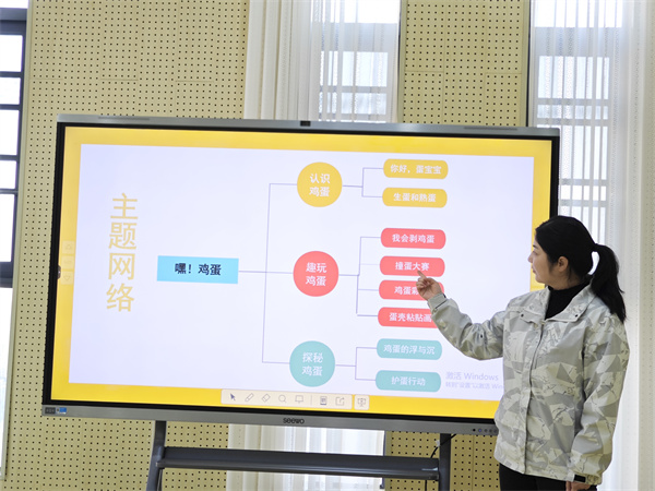 中一班的瞿文玲老師分享的課程是《嘿!雞蛋》課程起源是一天下午,幼兒吃雞蛋的時候,聽見兩個小朋友討論著。晨晨說:“我喜歡吃蛋黃,蛋黃吃起來香香的”。恒恒搖了搖頭說:“我不喜歡吃蛋黃,會噎著我"。雞蛋里富含豐富的營養(yǎng),而且圓圓的雞蛋里面蘊含了許多秘密呢。幼兒聽了都很好奇,紛紛想一探究竟。于是,源于幼兒的興趣,生成了這次的一周課程《嘿!雞蛋》。