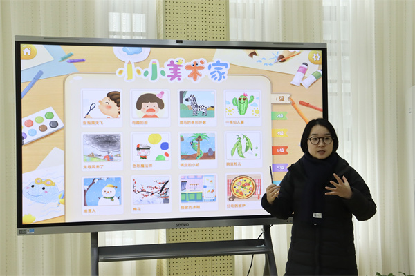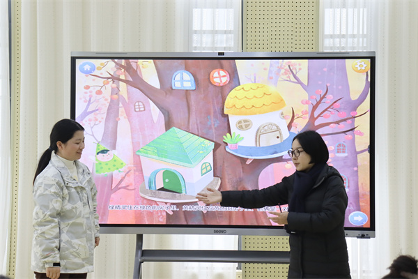 許老師走進班級,深入各班教師的集體活動中。通過現(xiàn)場觀摩教師在教學實踐中對教學軟件操作是否熟練,能否充分教學軟件實現(xiàn)活動中的直觀化和互動性。