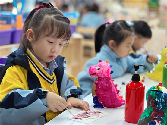 美是一種能力,更是一種素養(yǎng),它需要“耳濡目染”。清源融和園一步一景,大廳的“蒙德里安”轉(zhuǎn)角的“青山綠水”走廊的“徽州小調(diào)”等裝飾精致而有內(nèi)涵,處處都洋溢著孩子們成長的笑靨。從班級主題墻到回廊角**,琳瑯滿目、鮮活、靈動極具生命力。莫奈班、齊白石班等著名畫家命名的班級更讓觀摩的老師覺得新奇,不知不覺間體驗在環(huán)境里滲透的美育理念。