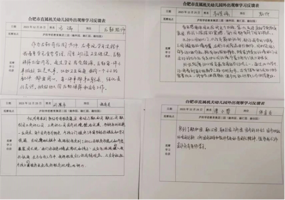 市直幼的老師們深感受益匪淺,紛紛表示廬陽學(xué)前教育集團的精神眼見為實,領(lǐng)教精度,嚴格而柔情的辦園理念,嚴謹而溫暖的園所管理,無不體現(xiàn)出高端時尚大氣的風(fēng)格,一園一品,一園一特,一園一館將廬陽學(xué)前的精神帶回園內(nèi),并在朱晨曦園長的領(lǐng)導(dǎo)下,發(fā)揚光大。