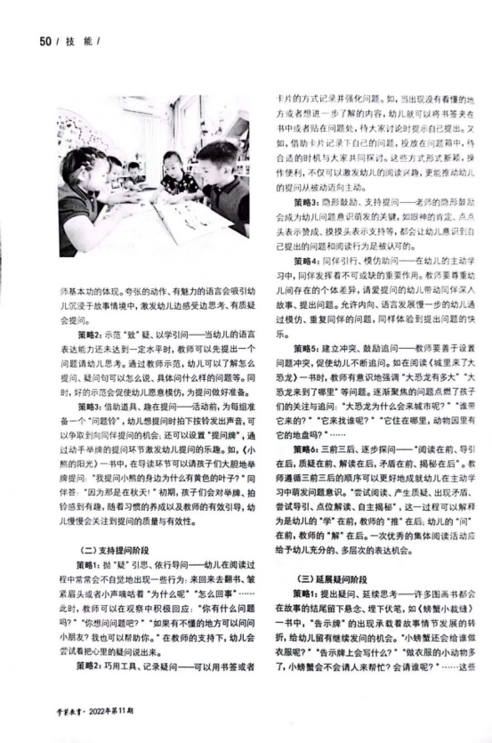 問題意識是幼兒思維發(fā)展的動力,是幼兒創(chuàng)新能力發(fā)展的“基石”。培養(yǎng)敢提問、會提問、能提出有質(zhì)量問題的幼兒,是老師們一直追尋的目標(biāo)。通過學(xué)習(xí)老師們了解到兒 童的創(chuàng)新思維、自主學(xué)習(xí)能力在早 期閱讀活動中同樣可以實現(xiàn)提升,在新時代視野下的幼兒教育工作者應(yīng)該如何努力培養(yǎng)在早期閱讀活動中幼兒的問題意識呢?