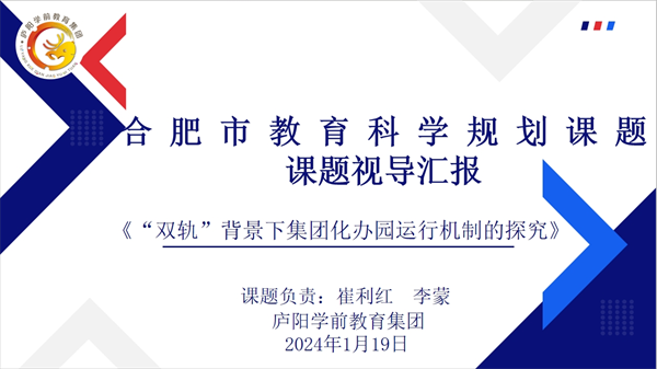 廬陽(yáng)學(xué)前教育集團(tuán)合肥市大楊融悅幼兒園執(zhí)行園長(zhǎng)李蒙對(duì)集團(tuán)課題《“雙軌”背景下集團(tuán)化辦園運(yùn)行機(jī)制的探究》進(jìn)行視導(dǎo)匯報(bào)。