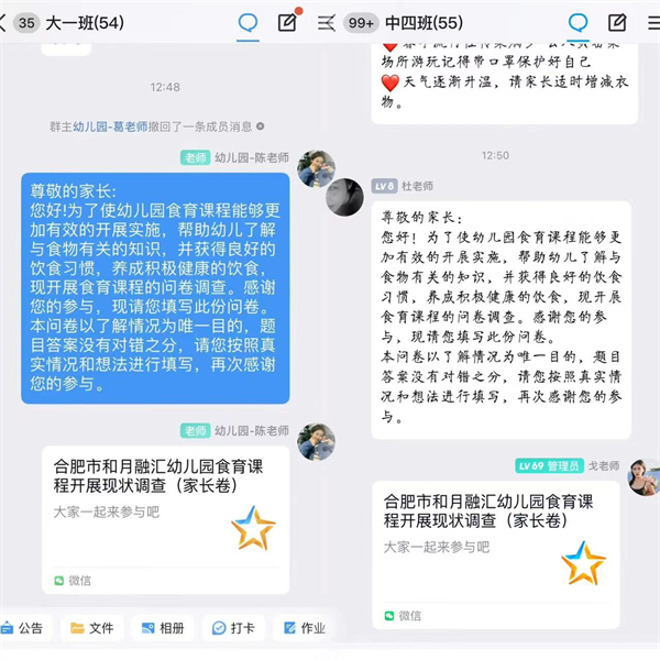 就課題研究中“食育課程開展現(xiàn)狀”問卷調(diào)查進(jìn)行初步分析研討與交流。大家各抒己見,共同交流研討出針對(duì)家長(zhǎng)和教師兩套問卷調(diào)查,確定了問卷調(diào)查的內(nèi)容和對(duì)象,制定了切實(shí)可行的調(diào)查問卷方案,利用問卷星向家長(zhǎng)發(fā)放調(diào)查問卷。