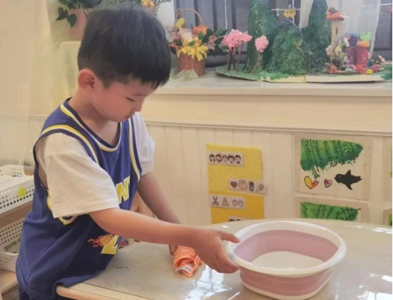 小小值日生上崗啦!看,他們個(gè)個(gè)精神飽滿,充滿干勁!在結(jié)合自身的已有經(jīng)驗(yàn)和教師的細(xì)致講解示范后,幼兒擦桌子、掃地、整理區(qū)域材料、疊衣服。還負(fù)責(zé)更新天氣播報(bào)站的信息、掛好毛巾、擦拭桌子以及整理圖書等工作,確保班級的環(huán)境整潔有序。