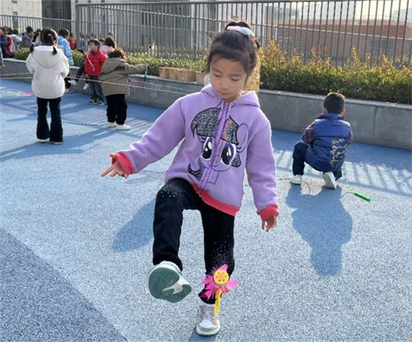 豐富多彩的民間傳統(tǒng)游戲有著濃郁的趣味性、娛樂性、知識性。在此次活動中,孩子們探索出跳繩的多種玩法,創(chuàng)造出跳皮筋的闖關(guān)模式,不僅能增長了知識,發(fā)展了體智,也收獲了游戲的快樂。