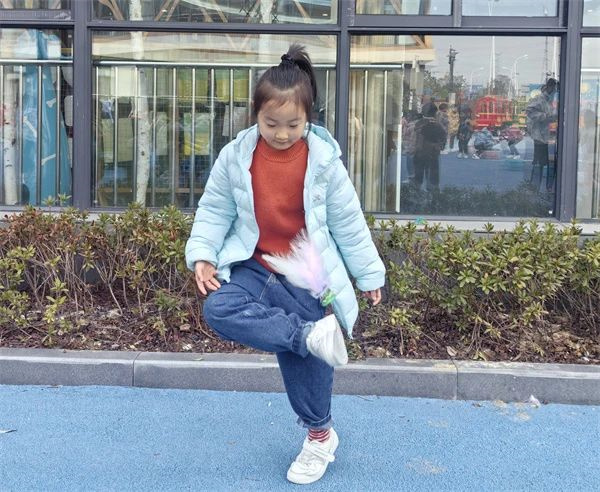 哇!這幾根羽毛粘在一起原來叫毽子?。】墒沁@小小羽毛做成的毽子怎么才能踢起來呢?通過孩子們的嘗試和不斷的練習(xí),知道毽子要放在右腳的內(nèi)側(cè),才能踢得又高又穩(wěn)。