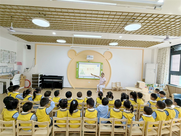 活動中,老師通過視頻、故事、兒歌等多種方式,幫助幼兒了解重陽節(jié)的由來和習俗。“老師,為什么重陽節(jié)要登高呢?”“重陽節(jié)和爺爺奶奶有什么關系呢?孩子們的問題如雨后春筍般涌現(xiàn),老師們則耐心解答,引導孩子們深入思考。在輕松愉快的氛圍中,師生們共同探討了重陽節(jié)的文化意義。