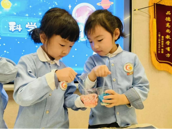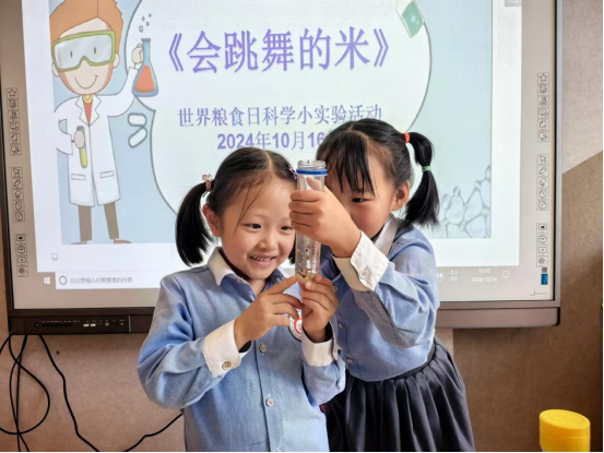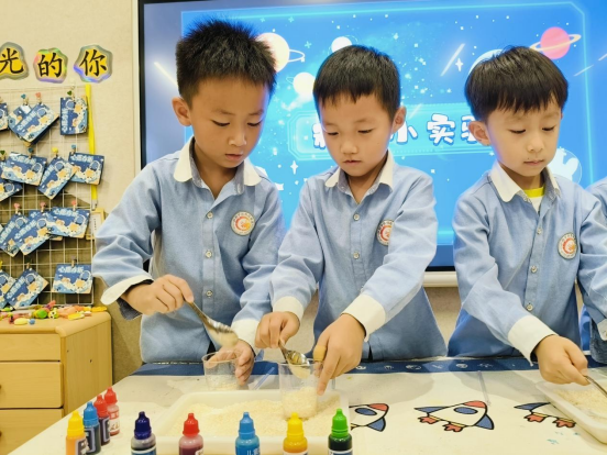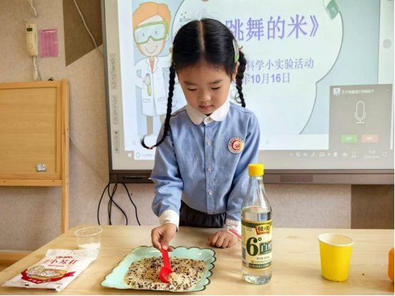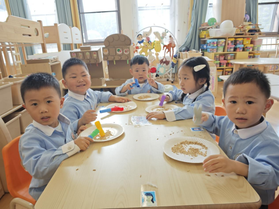在這個特別的日子里,教師還用用現(xiàn)有的五谷雜糧作材料,引導幼兒開展了一場關(guān)于糧食的科學小實驗活動。生活中的一個個科學道理,點燃了孩子們大大的科技夢想。
