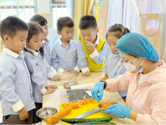 香香甜甜的奶香米漿一直深受幼兒的喜愛,美味可口的壽司也是他們的心頭愛。經(jīng)過重重工序,終于品嘗到了美味的食物,大家臉上洋溢著幸福的喜悅。