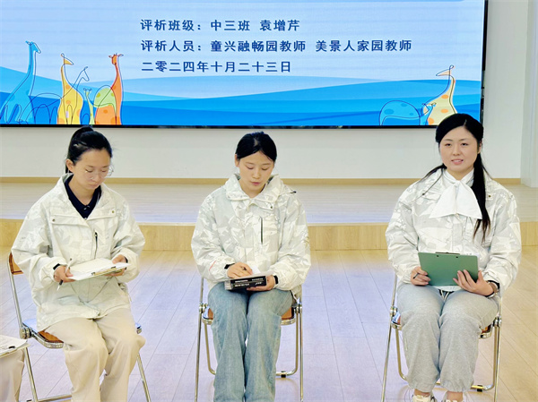 融暢園教師研討團隊提出教師營造適宜的環(huán)境與良好的師幼和諧氛圍是組織溫暖而有效一日活動的關(guān)鍵。需要三位教師相互配合以愛心、耐心和責(zé)任心為基礎(chǔ),通過營造溫馨的環(huán)境、注重師幼互動的情感交流、安排多樣化的活動為幼兒創(chuàng)造一個充滿愛與關(guān)懷的成長環(huán)境。