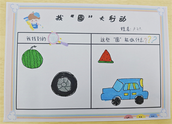 那我們的身邊還有哪些圓呢?孩子們像一群小偵探一樣,開啟了一場充滿驚喜的找圓行動,一起來看看他們的發(fā)現(xiàn)吧!