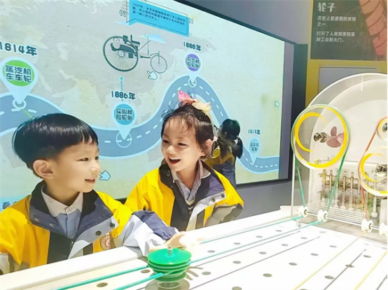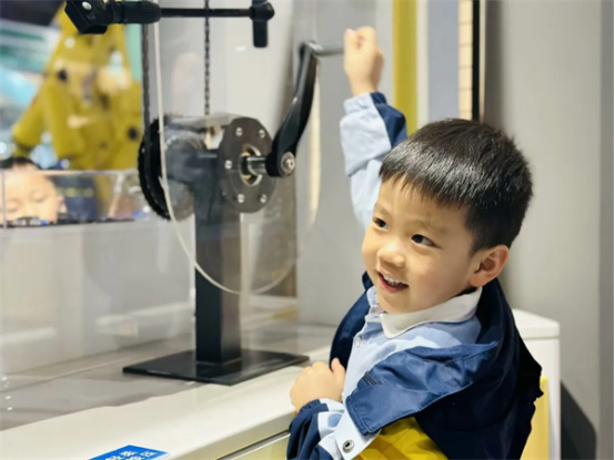 這里展示了很多物理知識,雖然有些內(nèi)容聽起來很難懂,但是在老師生動地解釋下,孩子們也慢慢明白了一些簡單的道理。比如通過滑輪系統(tǒng),他們驚訝地發(fā)現(xiàn)自己竟然可以輕松拉起那么重的東西!