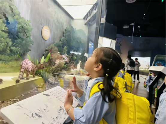 “哇,看那邊的大恐龍!”走進自然展廳,小朋友們仿佛置身于真實的自然環(huán)境中,北極展區(qū)的冰天雪地和熱帶雨林區(qū)的蔥郁綠意讓人仿佛穿越了時空。孩子們驚嘆于北極光的絢麗,也在熱帶雨林的模擬瀑布聲中感受到了大自然的神奇。