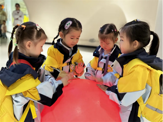 走進科技館,寶貝們被各種各樣的科技設備吸引了,迫不及待地想要去摸一摸,試一試,興奮之情溢于言表。他們認真觀察,眼前的神奇世界深深地吸引了一雙雙探尋的目光。這里的一切對于他們來說都具有無限的吸引力,孩子們的求知欲、探索欲,科學體驗得到盡情釋放。在科技館里,設有“自然”展廳、“好奇”展廳、“安寧”展廳、“數(shù)學”展廳等11個常設展廳。孩子們體驗著各種各樣的科技項目,興奮地穿梭于各個展廳之間。