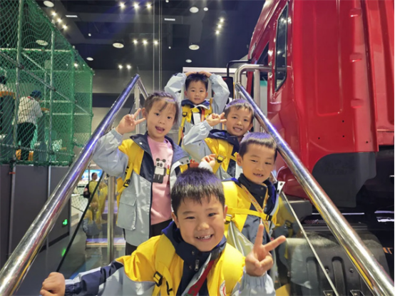 一進入科技館,小朋友們就被“好奇展廳”深深吸引?!巴?!看那個大滑滑梯,好高好長??!”“還有消防員叔叔滅火的游戲呢!我也想玩!”這里展示了各種有趣的互動裝置,如大型滑滑梯、消防員滅火體驗、小汽車、高空網(wǎng)格等設施,讓孩子們在玩耍中感受科學的魅力。老師們引導孩子們動手操作,鼓勵他們提問和思考,小小的展廳里充滿了歡聲笑語和驚奇地發(fā)現(xiàn)。