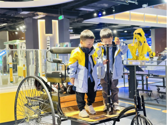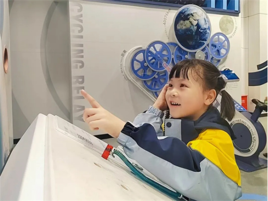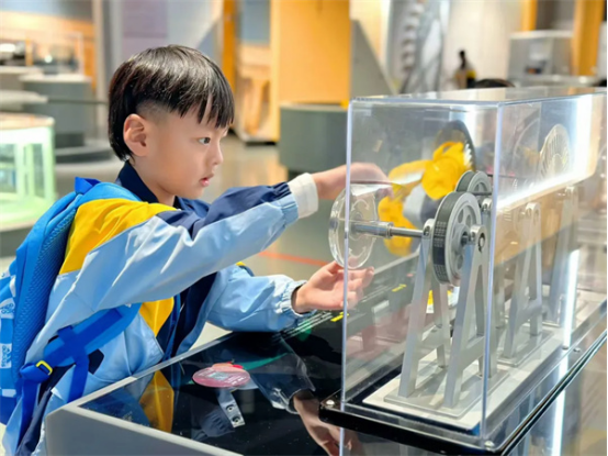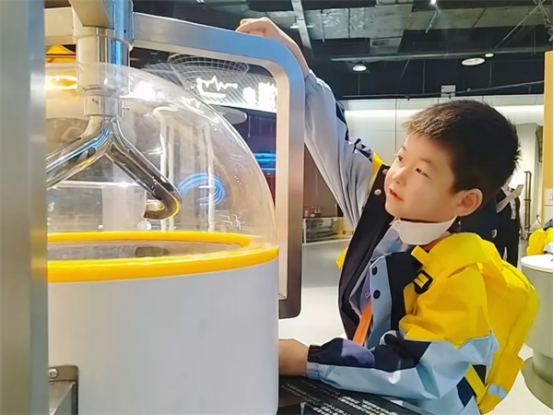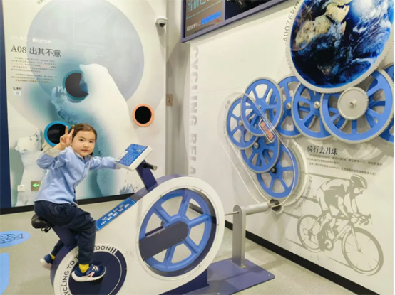 “原來太陽也可以發(fā)電啊,我們家也要裝一個太陽能板!”能量展廳讓孩子們大開眼界,他們了解到了各種能量是如何轉(zhuǎn)換的,比如太陽能可以變成電能,給家里的電燈和電視供電。這些知識雖然復雜,但是通過游戲和實驗,孩子們開始對這些抽象的概念有了初步的理解。
