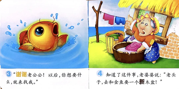 “謝謝老公公!以后,你想要什么,就來找我?!敝懒诉@件事,老婆婆說:“老頭子,去和金魚要一個新木盆!”