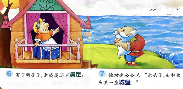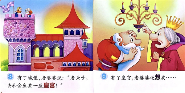 有了城堡,老婆婆說:“老頭子,去和金魚要一座皇宮!”有了皇宮,老婆婆還想要……