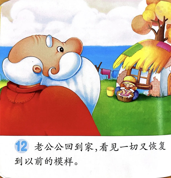 有了新房子,老婆婆還不滿足。她對老公公說:“老頭子,去和金魚要一座城堡!”