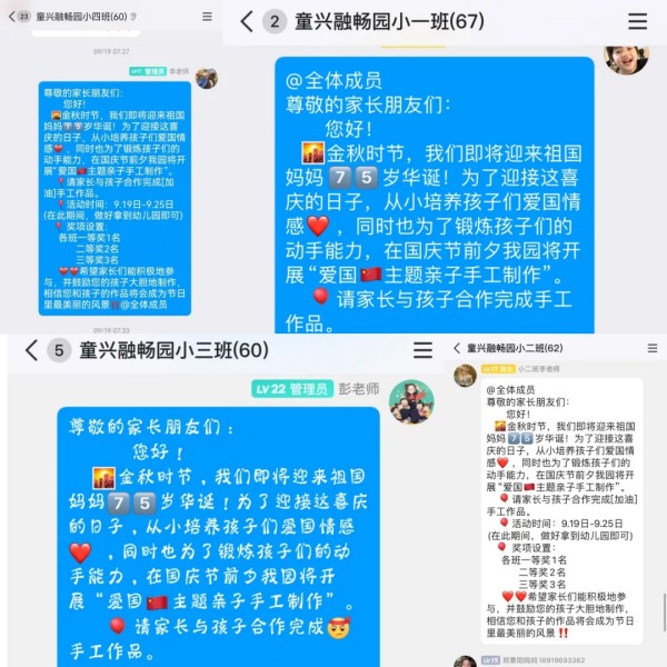在本次迎國慶親子作品展中,我們欣喜地看到了家庭與幼兒園、家長與孩子之間深度互動的生動實踐。每一幅作品都是無聲的語言,孩子們用稚嫩的雙手為祖國媽媽奉上自己的祝福。我們相信一顆顆愛國的種子已在孩子們幼小的心靈中悄然種下,必將伴隨著他們的成長愈發(fā)濃烈。祝福偉大的祖國媽媽生日快樂,永遠繁榮富強!