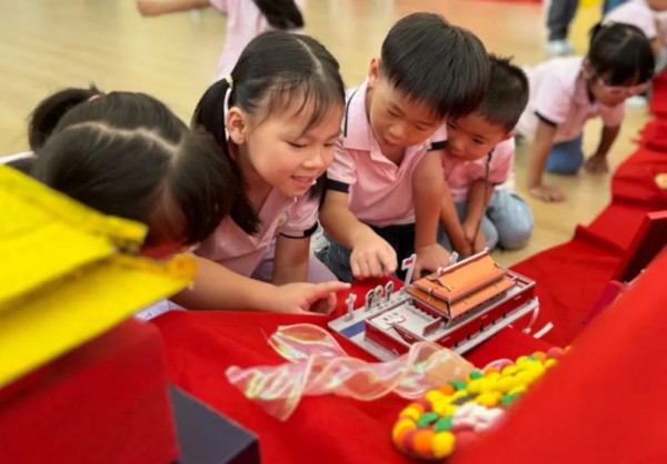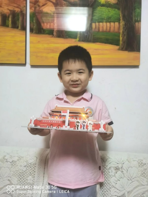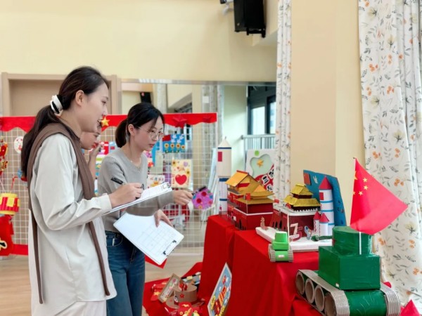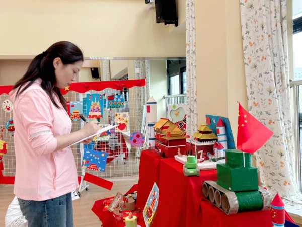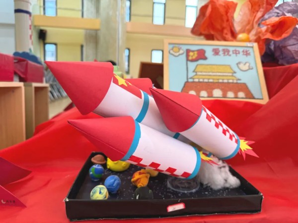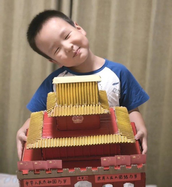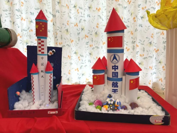 每個孩子都是藝術(shù)家。孩子的眼神是清澈的,萬物入目皆有情,孩子的想象是詩意的,山水草木皆有趣,孩子的小手是靈巧的,件件作品皆有味。一件件精致的手工藝品,在家長與孩子們靈巧的手指尖逐一綻放出奪目的光彩,如天安門、長城、航天火箭等諸多元素栩栩如生。