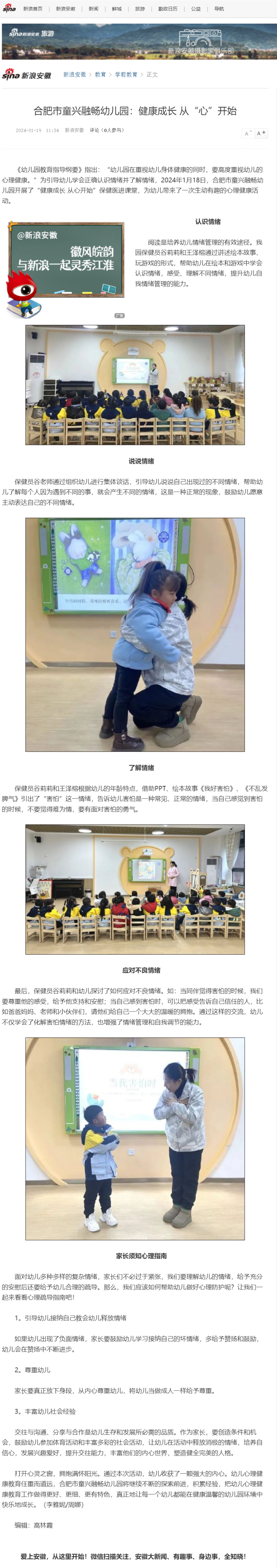 合肥市童興融暢幼兒園:健康成長 從“心”開始