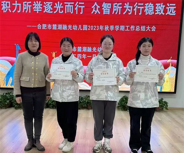 廬陽學前教育集團麓湖融光園:李思雨 刁瑩 鄭飛老師 在2023年秋季學期環(huán)境創(chuàng)設(shè)評選活動中,榮獲一等獎
