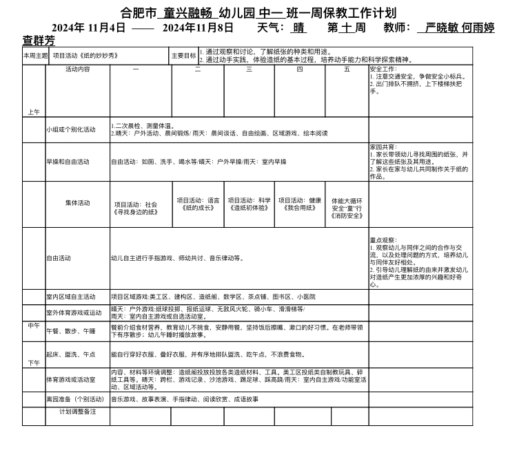 廬陽(yáng)教育發(fā)展集團(tuán)童興融暢園:中班第十周保教工作計(jì)劃